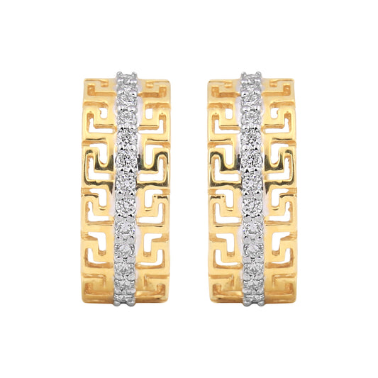 Gold Cubic Zirconia Greek Key Hoop Earrings